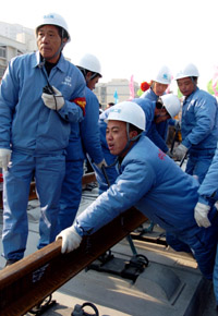 12月16日上午,京津城際鐵路跨天津市新開路立交橋橋頭鋪下最后一根鋼軌,順利實現(xiàn)全線貫通。京津城際鐵路2008年初進(jìn)入綜合調(diào)試階段,北京奧運會前將正式開通并投入運營,屆時北京、天津間火車全程直達(dá)運行僅需30分鐘。