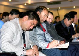12月25日,學員在課堂上記筆記。當日,上海農(nóng)產(chǎn)品批發(fā)市場為新疆阿克蘇地區(qū)培養(yǎng)農(nóng)村經(jīng)紀人的首期培訓班正式開學。培訓班為期一周,共有60名阿克蘇農(nóng)民參加。