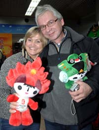 1月1日,2008中國奧運(yùn)旅游年正式啟動,來自德國的234名游客成為2008年北京入境的第一批旅游者。一對來自德國的游客抱著剛得到的新年禮物“福娃”開心不已。