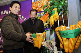 1月9日,來自鹽池縣的馬玉濤(左)向農(nóng)民朋友介紹:由于正確選用了適合土壤酸堿性的改良玉米種子,2007年糧食畝產(chǎn)接近翻番。 當日,正在寧夏科技館舉行的“設(shè)施農(nóng)業(yè)物資裝備與配套技術(shù)展示交流會”吸引了眾多專程前來取“真經(jīng)”的農(nóng)民,他們在展會上參觀學習、考察項目、咨詢請教……“科學種田、技術(shù)致富”正成為促進新農(nóng)村建設(shè)中農(nóng)業(yè)增效、農(nóng)民增收的有效途徑。 |