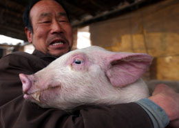 1月17日,在甘肅省天水市麥積區(qū)甘泉鎮(zhèn)的一處養(yǎng)殖基地內(nèi),農(nóng)民阮清平正抱著繁育的良種豬仔。 針對肉蛋奶等農(nóng)產(chǎn)品價格大幅上漲的情況,今年甘肅將重點(diǎn)扶持新建標(biāo)準(zhǔn)化養(yǎng)殖小區(qū)500個,擴(kuò)大養(yǎng)殖規(guī)模,增加出欄量和市場供應(yīng),突出加強(qiáng)生豬良種繁育體系和標(biāo)準(zhǔn)化規(guī)模養(yǎng)殖場建設(shè),力爭豬肉產(chǎn)量達(dá)到70萬噸,肉蛋奶產(chǎn)量達(dá)到170萬噸,增長9.7%。
