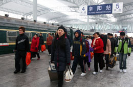 1月28日,旅客從阜陽(yáng)火車站新建成的無(wú)站臺(tái)柱風(fēng)雨棚下出站。當(dāng)日,歷時(shí)6個(gè)月的安徽阜陽(yáng)火車站擴(kuò)能改造工程全面竣工,并正式開通啟用。阜陽(yáng)火車站是京九鐵路的重要樞紐,又是全國(guó)鐵路春運(yùn)重點(diǎn)車站之一。