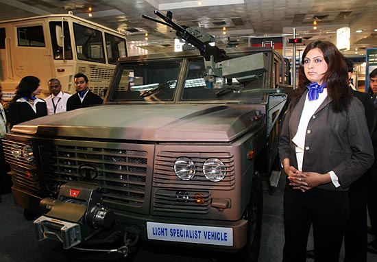 16日,新式戰(zhàn)車在印度首都新德里舉行的軍備展上展出。2008國際國防軍備展當(dāng)天開幕,來自全球30多個(gè)國家和地區(qū)的400多家廠商的產(chǎn)品參展。新華社/法新