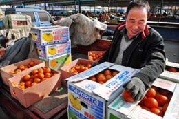 2月18日,寧夏賀蘭縣立崗鎮(zhèn)蔬菜基地菜農(nóng)馬云愧正在銀川北環(huán)蔬菜批發(fā)市場(chǎng)銷售西紅柿。 連日來(lái),隨著銀川市各主要蔬菜種植基地災(zāi)后生產(chǎn)恢復(fù)正常,加上公路交通運(yùn)輸?shù)臅惩ǎy川市各蔬菜批發(fā)市場(chǎng)貨源充足,價(jià)格開(kāi)始平穩(wěn)回落,西紅柿、黃瓜、西芹、豆角兒等常見(jiàn)蔬菜價(jià)格較春節(jié)期間下降20%以上。 |
