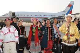 圖為來自云南的全國(guó)政協(xié)委員乘飛機(jī)抵達(dá)北京西郊機(jī)場(chǎng)。