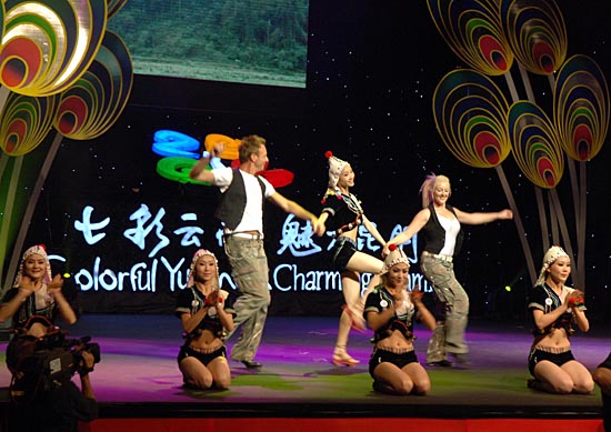 8日,在澳大利亞悉尼歌劇院,中國與澳大利亞的舞蹈演員同臺演出。當天,中國藝術(shù)家在悉尼歌劇院上演了一臺充滿濃郁云南少數(shù)民族風情的歌舞晚會,給當?shù)赜^眾帶來了美好的藝術(shù)享受。這是喜迎奧運的中國在跨入2008年后在海外舉辦的“為奧運喝彩”大型活動之一。