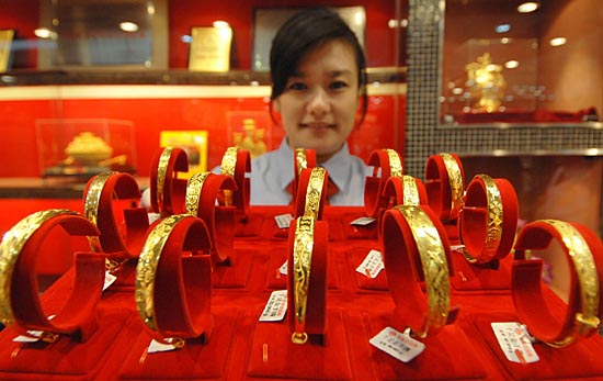 3月11日,沈陽某商場的工作人員在整理黃金飾品。從3月10日起,沈陽黃金足金價格達(dá)到260元/克,每克上調(diào)7元;千足金達(dá)到270元/克,每克上調(diào)7元,這是2008年沈陽黃金價格第3次上調(diào)。