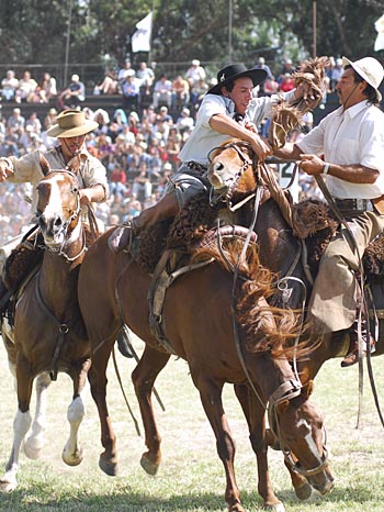16日,烏拉圭騎手們在首都蒙得維的亞的普拉多公園參加馴馬比賽。當天,烏拉圭最重要的節(jié)日之一“克里奧爾周”開始,高喬人的馴馬比賽是最吸引人的節(jié)慶活動。生活在阿根廷和烏拉圭潘帕斯草原上的牛仔被稱為“高喬人”。