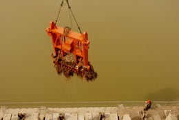 4月9日,工人用吊車清理黃河上的各種垃圾。據(jù)了解,為了確保三門峽大壩的發(fā)電機(jī)組正常發(fā)電,三門峽大壩的工人們每天要從黃河里打撈各種垃圾20余噸。