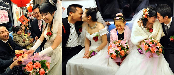日前,12對(duì)新人在江蘇省南京市參加了以地鐵列車為婚車的集體婚禮,讓南來(lái)北往的乘客見(jiàn)證愛(ài)情、分享快樂(lè)。