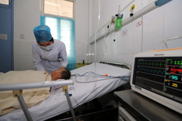 4月28日,一名危重患兒在阜陽市第二人民醫(yī)院重癥監(jiān)護(hù)室接受治療。