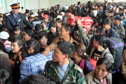 5月7日,乘坐A45次列車的旅客在檢票進(jìn)站。隨著水稻插秧季節(jié)的到來,哈爾濱東站自5月4日起至16日加開A45、A69次臨時(shí)客車。據(jù)介紹,這兩列臨時(shí)客車主要運(yùn)送去往虎林、建三江、前進(jìn)鎮(zhèn)方向的“插秧大軍”,兩個(gè)車次每日可加送外出務(wù)工人員2000余人次。