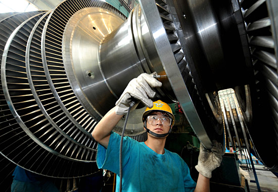 6月9日,四川東江汽輪機(jī)廠德陽分廠的工人在生產(chǎn)電力設(shè)備。受地震影響,四川一些工業(yè)企業(yè)的生產(chǎn)設(shè)施、設(shè)備遭受較大損失。目前,各企業(yè)積極開展生產(chǎn)自救,部分企業(yè)已陸續(xù)恢復(fù)生產(chǎn)。 | |