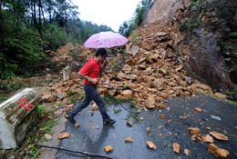 安徽南部、江西及浙江交界地區(qū)連續(xù)兩天遭遇暴雨襲擊,給當(dāng)?shù)氐慕煌、生產(chǎn)和群眾生活帶來嚴(yán)重影響。皖南山區(qū)多處道路出現(xiàn)損毀,沿線出現(xiàn)山體滑坡和塌方。其中220省道休寧段塌方,導(dǎo)致安徽通往江西、浙江的交通中斷,車輛被阻。目前,公路部門正在抓緊搶修。