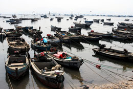 6月16日,在煙臺市芝罘區(qū)東口碼頭,漁民將自己的漁船?吭诎哆叀漠斎臻_始,我國黃海、渤海海域開始伏季休漁,休漁期將持續(xù)到9月份。