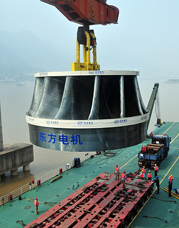 “巨無霸”轉(zhuǎn)輪運(yùn)抵三峽右岸電站廠房