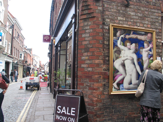 2日,在英國(guó)中部的歷史古城約克,一名婦女在欣賞掛在街頭墻壁上的一幅世界名畫。近日,以藝術(shù)收藏聞名的英國(guó)國(guó)家美術(shù)館與約克藝術(shù)館合作推出了為期三個(gè)多月的“教育旅行”活動(dòng),精選49幅世界著名畫家的作品,擺放在約克市中心,讓世界名作走出畫廊,來(lái)到民間,融入大眾生活。