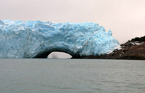 7日,位于阿根廷南方加拉法特的國家冰川公園內的莫雷諾大冰川開始崩塌,目前冰川已經被沖出一個大洞,形成獨特的冰川拱門的景觀。整座冰川拱門最終將徹底坍塌。新華社發(fā)