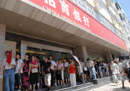 7月8日,合肥市民排隊等待兌換奧運會紀念鈔。