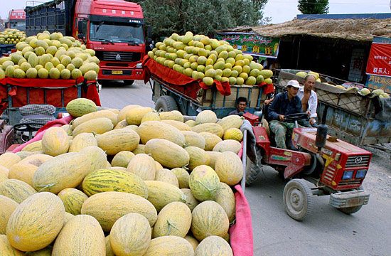 近日,新疆哈密市南湖鄉(xiāng)一萬多畝獲得全國綠色食品認證的哈密瓜陸續(xù)成熟上市。近年來哈密采用綠色無公害標準化栽培技術(shù),提高了哈密瓜的品質(zhì),吸引了大量海內(nèi)外客商。