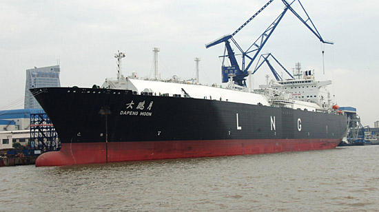7月10日,中國(guó)第二艘液化天然氣(LNG)船“大鵬月”在上海交付船東,這是滬東中華造船(集團(tuán))有限公司繼今年4月3日成功建造中國(guó)第一艘液化天然氣(LNG)船后的又一成果。這是“大鵬月”船?吭邳S浦江碼頭。