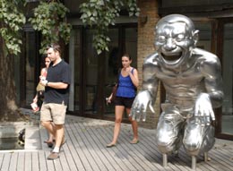 7月13日,幾名外國游客在北京798藝術(shù)區(qū)游覽。隨著奧運會的臨近,位于北京市城東大山子的798藝術(shù)區(qū)迎來越來越多的中外游客,藝術(shù)區(qū)已于7月8日正式啟動奧運接待工作。