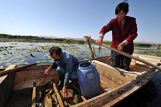 目前,新疆最大的漁業(yè)生產(chǎn)基地博斯騰湖正處于捕撈旺季。為保持當(dāng)?shù)貪O業(yè)可持續(xù)增長,博湖縣近年來加大魚種增殖放流力度和水域生態(tài)改善,2008年計(jì)劃投放大規(guī)格魚種200噸。