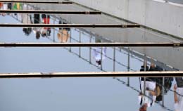 這是為北京奧林匹克公園景觀水提供補(bǔ)充水的北京清河污水處理廠的沉淀池。 高品質(zhì)再生水已經(jīng)在北京奧林匹克中心區(qū)廣泛應(yīng)用,此項(xiàng)舉措每年可以節(jié)約清潔水源3000萬(wàn)立方米。為奧運(yùn)中心區(qū)提供的高品質(zhì)再生水,是以清河污水處理廠二級(jí)出水作為水源,通過(guò)清河和北小河兩家再生水廠的超濾膜工藝以及MBR和反滲透處理工藝后,再完成活性炭吸附、臭氧氧化等程序。2008年3月,高品質(zhì)再生水便應(yīng)用于奧林匹克中心區(qū)的景觀及綠化項(xiàng)目,而且還成為“鳥(niǎo)巢”等眾多奧運(yùn)場(chǎng)館的日常用水。 |