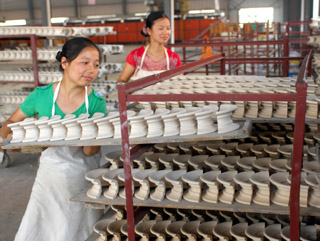 江西萍鄉(xiāng)加快改造升級傳統(tǒng)產(chǎn)業(yè)。圖為江西省萍鄉(xiāng)市黃冠化工填料有限公司的職工在搬運瓷環(huán)。新華社記者:周科