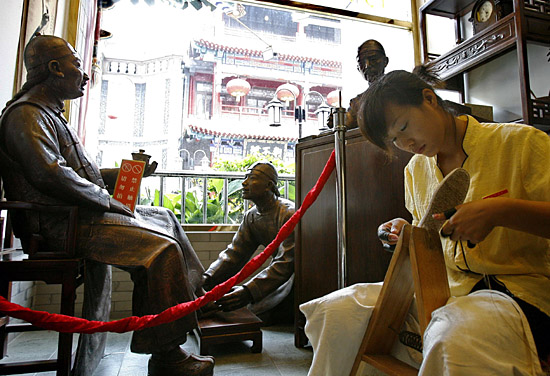 8月20日,“內(nèi)聯(lián)升”的師傅在店內(nèi)做布鞋。內(nèi)聯(lián)升始建于清咸豐三年(公元1853年),是手工布鞋行業(yè)中歷史久遠(yuǎn)的企業(yè),曾幾易其址,現(xiàn)坐落于北京大柵欄。經(jīng)歷了150余年的滄桑,“內(nèi)聯(lián)升”老字號的名氣依然響亮,其制作的傳統(tǒng)千層底布鞋,選用純天然材料:毛料、棉布、牛皮、麻繩等,加工過程采用手工制作,至今仍然受到國內(nèi)外顧客的青睞。