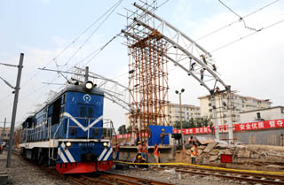 8月27日,在太原火車站,一列機(jī)車從正在施工的站臺(tái)旁駛過。投資1.5億元的太原火車站改造工程目前正在緊張進(jìn)行,這也是太原火車站建站以來最大規(guī)模的升級(jí)改造,改造區(qū)域包括站臺(tái)區(qū)、站內(nèi)設(shè)施和軌道群。工程從今年6月中旬開始,預(yù)計(jì)到年底結(jié)束,改造后太原火車站的旅客容納量將增加近一倍。