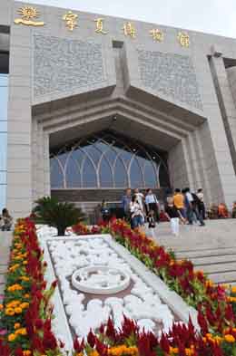 富有回族特色的寧夏博物館外景(8月28日攝)。當(dāng)日,寧夏博物館新館正式開館,并免費(fèi)向公眾開放。該館設(shè)計(jì)文物飽和藏量達(dá)15萬件,日接待參觀人數(shù)1000人以上,是一座集文物收藏、展覽、研究、開發(fā)為一體的現(xiàn)代化博物館。