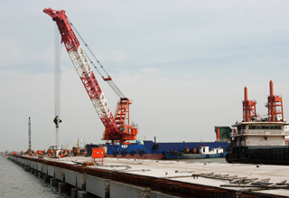天津港30萬噸級原油碼頭工程正在建設(shè)中