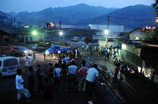 9月5日凌晨2時52分,四川省興文縣金河煤礦發(fā)生煤與瓦斯突出事故,在當班入井的44人中,死亡12人,失蹤6人,安全出井26人。等待消息的家屬和群眾在金河煤礦井口。新華社記者:陳燮