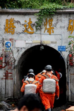 云南彝良煤礦瓦斯爆炸事故導致5人死亡。9月10日,救援隊伍下井搜救被困人員。新華社發(fā)(張廣玉