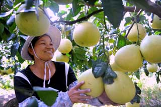 10月23日,福建省漳州市南靖縣書(shū)洋鎮(zhèn)上田村果農(nóng)陳水霞在采摘蜜柚。 近年來(lái),當(dāng)?shù)剞r(nóng)民大力發(fā)展蜜柚、香蕉、荔枝等特色農(nóng)業(yè),僅蜜柚種植面積全市就達(dá)60多萬(wàn)畝,年產(chǎn)量70多萬(wàn)噸,產(chǎn)品暢銷(xiāo)全國(guó)各大城市并遠(yuǎn)銷(xiāo)東盟國(guó)家,蜜柚生產(chǎn)已成為當(dāng)?shù)剞r(nóng)民增收的重要途徑。 |