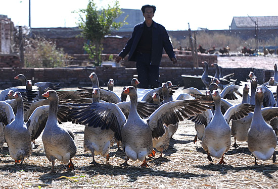 天津大港區(qū)一家養(yǎng)殖園規(guī);B(yǎng)殖灰天鵝,為天津養(yǎng)殖業(yè)增添新品種。據(jù)介紹,灰天鵝又稱大雁,一只經(jīng)飼養(yǎng)成熟的灰天鵝可重達20多斤,具有較高的經(jīng)濟價值。