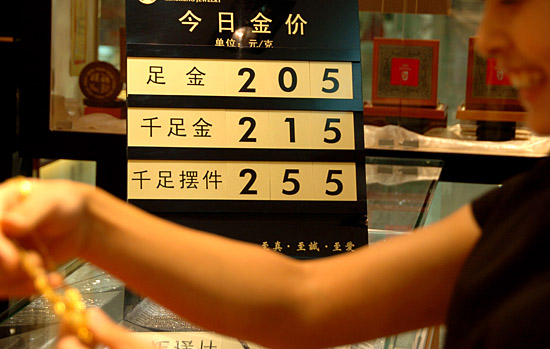 近日,受國際黃金期貨價格下跌的影響,?谑悬S金飾品價格出現(xiàn)大幅下降。?诘那ё憬瘘S金飾品價格已經(jīng)跌至今年最低點——215元/克,比最高時298元/克下降了27.9%。