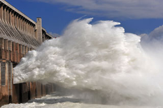 江水通過三峽泄洪壩下泄(攝于11月7日)。 | 中國三峽總公司11月7日晚發(fā)布消息稱,11月4日,三峽工程壩前水位達(dá)到海拔高程172.3米,2008年試驗(yàn)性蓄水任務(wù)完成。蓄水期間,各項(xiàng)監(jiān)測數(shù)據(jù)表明,各樞紐建筑物變形、基礎(chǔ)滲流及應(yīng)力應(yīng)變測值均在正常范圍內(nèi),樞紐建筑物工作性態(tài)正常;機(jī)組、船閘均處于正常運(yùn)行狀態(tài);近壩庫區(qū)地震活動正常,庫岸基本穩(wěn)定,沒有發(fā)生大面積庫岸崩塌、滑坡現(xiàn)象;泥沙觀測正常;蓄水前后庫區(qū)水質(zhì)與水體環(huán)境無類別變化。蓄水期間,加強(qiáng)了漂浮物清理,對發(fā)電、航運(yùn)沒有造成不利影響。 |