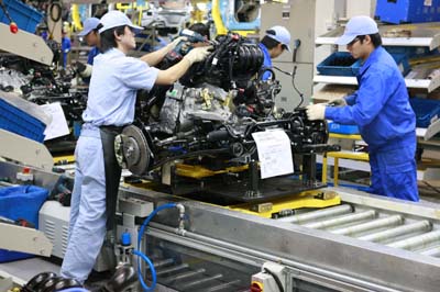 11月19日,技術(shù)工人在上海汽車(chē)集團(tuán)臨港新城廠區(qū)裝配流水線(xiàn)上作業(yè)。目前上海市正在向國(guó)家級(jí)自主創(chuàng)新型裝備制造業(yè)基地的目標(biāo)推進(jìn)。民用航空配套、乘用車(chē)整車(chē)、船舶關(guān)鍵件、海洋工程設(shè)備等五大裝備產(chǎn)業(yè)發(fā)展格局已基本形成。 |