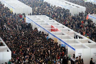 11月20日,“江蘇省暨南京市2009屆普通高校畢業(yè)生公益供需洽談會(huì)”在南京國(guó)際展覽中心舉行,近千家用人單位為畢業(yè)生提供有效需求職位4萬(wàn)多個(gè),參會(huì)用人單位及數(shù)萬(wàn)應(yīng)聘畢業(yè)生均免費(fèi)入場(chǎng)。江蘇省2009年高校畢業(yè)生總數(shù)將達(dá)45.8萬(wàn)人,比2008年增加約3萬(wàn)人,畢業(yè)生人數(shù)再創(chuàng)歷史新高。
