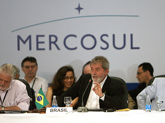 16日,巴西總統(tǒng)盧拉在南方共同市場首腦會議上致辭。當天,第36屆南方共同市場首腦會議在巴西紹伊皮海濱舉行。