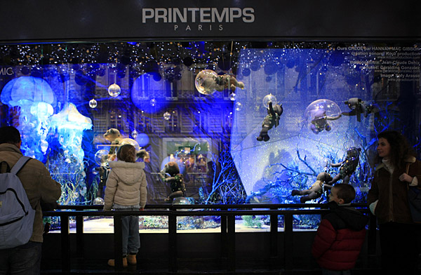 17日,人們在法國巴黎春天百貨商場的圣誕櫥窗前駐足。在16日法國巴黎春天百貨商場男裝部發(fā)現(xiàn)5個未安置引爆裝置的爆炸物后,該商場當(dāng)天已恢復(fù)正常營業(yè)。法國內(nèi)政部長阿利奧—馬里當(dāng)天也就此宣布了一系列安全措施,包括在巴黎、里昂、馬賽等大城市增加安全力量,對大商場周邊停車進(jìn)行限制等。
