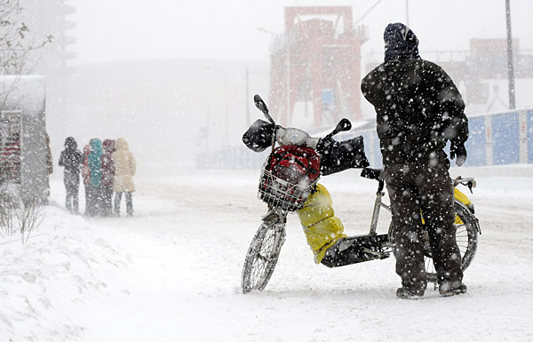 1月22日,沈陽(yáng)街頭大雪紛飛,行人冒雪出行。
