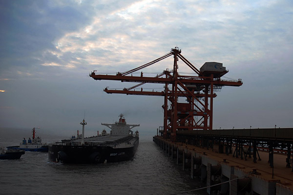 一艘輪船?吭诓苠25噸級礦石碼頭(2月3日攝)。記者從唐山市曹妃甸管委會獲悉,2009年1月份,唐山港曹妃甸港區(qū)吞吐量達(dá)到4006271噸,創(chuàng)下自開航以來單月吞吐量最高記錄。