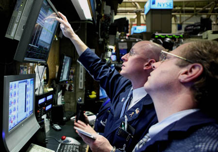 2月10日,交易員在美國紐約證券交易所工作。當(dāng)日,美國參議院通過了總額8380億美元的經(jīng)濟刺激計劃,財政部也公布修改后的金融救援方案,但是上述消息并沒有緩解市場投資者對美國經(jīng)濟陷入深度衰退的擔(dān)心,有關(guān)救助銀行業(yè)措施的不確定性導(dǎo)致投資者拋售金融股,紐約股市三大股指全線暴跌4%以上。