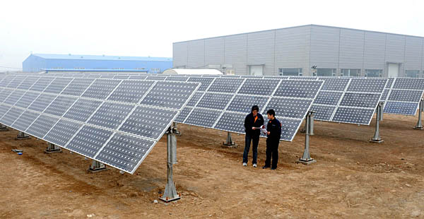 | 3月5日,保定市科諾偉業(yè)公司工作人員在單軸跟蹤式太陽(yáng)能發(fā)電系統(tǒng)前工作。日前,由保定市科諾偉業(yè)公司研發(fā)的雙軸、單軸跟蹤式太陽(yáng)能光伏發(fā)電站問(wèn)世。這種發(fā)電站的太陽(yáng)能電池板就像向日葵一樣,通過(guò)實(shí)時(shí)跟蹤太陽(yáng)運(yùn)動(dòng),增強(qiáng)了太陽(yáng)輻射接收量,可使發(fā)電量提高20%至40%。 | |