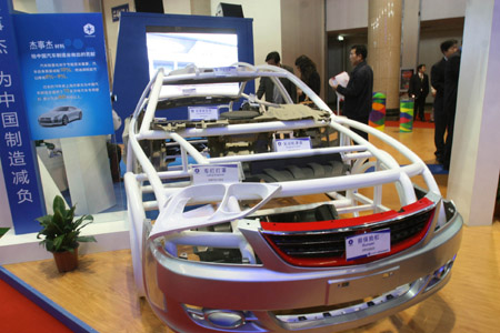 3月19日,一家參展商展出用塑料零件代替金屬零件、通過(guò)減輕自重達(dá)到節(jié)能減排效果的汽車模型。當(dāng)日,2009中國(guó)國(guó)際節(jié)能減排和新能源科技博覽會(huì)在北京展覽館舉行。展會(huì)以“節(jié)能減排、振興經(jīng)濟(jì)、科技創(chuàng)新、開拓未來(lái)”為主題,來(lái)自國(guó)內(nèi)外的200多家企業(yè)和機(jī)構(gòu)參展。
