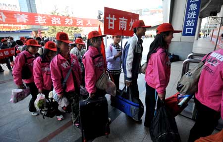 3月25日,“隴原妹”走進(jìn)蘭州火車(chē)站。當(dāng)日,由甘肅省婦聯(lián)組織的甘肅省貧困地區(qū)“隴原妹”進(jìn)京就業(yè)創(chuàng)業(yè)活動(dòng)啟動(dòng),300多名來(lái)自貧困地區(qū)的婦女從蘭州火車(chē)站出發(fā)前往北京,她們將在北京進(jìn)行培訓(xùn)后,在家政等服務(wù)行業(yè)就業(yè)。