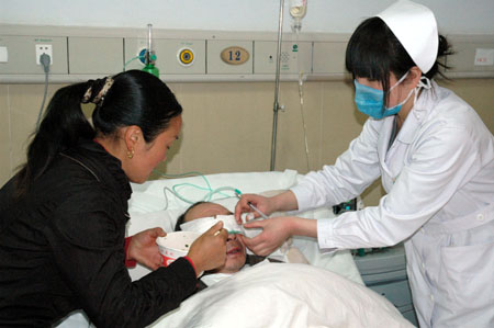3月25日,五峰縣五峰鎮(zhèn)楠木村三組的鄭曉萍(左)在五峰縣人民醫(yī)院協(xié)助醫(yī)務人員護理她的叔叔。 截至3月25日9時,湖北省五峰土家族自治縣的散裝白酒致死人命事件累計已有4人死亡,10多人被送往醫(yī)院搶救。五峰縣正在采取系列措施控制事態(tài)進一步發(fā)展。